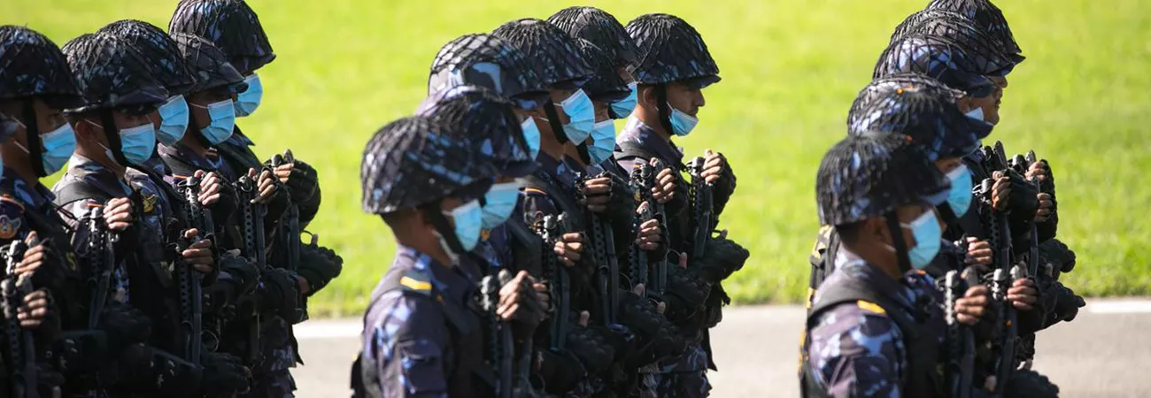 نیپال کے کٹھمنڈو میں نیپالی پولیس کے اہلکار یوم دستور کی تقریب میں شریک ہیں۔(شِنہوا)