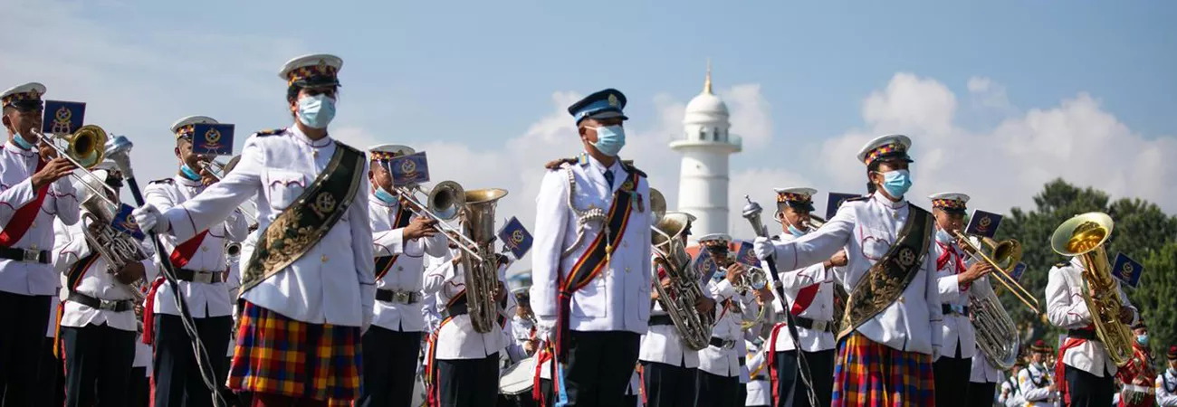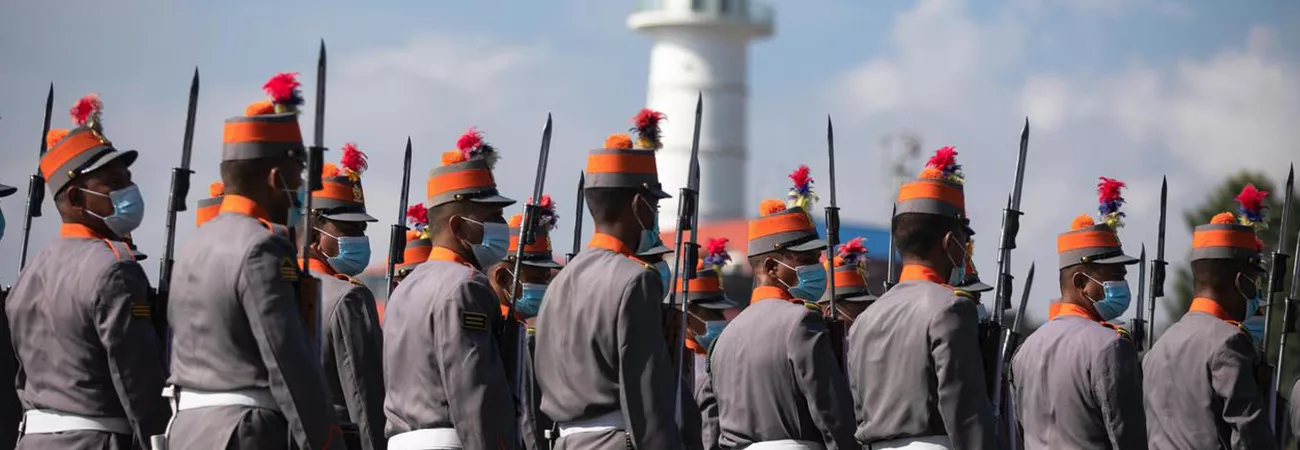 نیپال کے کٹھمنڈو میں نیپالی فوجی یوم دستور کی تقریب میں شریک ہیں۔(شِنہوا)