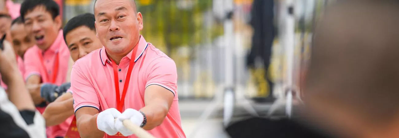 چین کے اندرون منگولیا خوداختیار خطے کے شہر ہوہوٹ میں آمدہ چینی کسانوں کے کٹائی میلے کے جشن میں لوگ رسہ کشی کے مقابلے میں حصہ لے رہے ہیں۔ (شِںہوا)