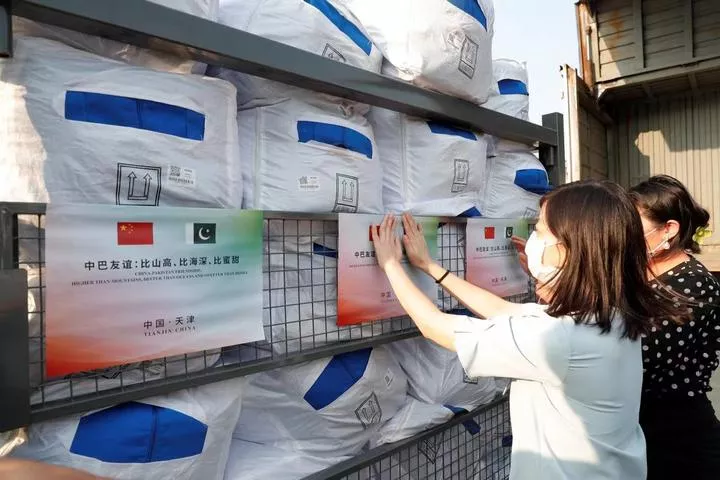 چین کی شمالی بلدیہ تیان جن کی جانب سے پاکستانی سیلاب سے متاثرہ صوبوں اور شہروں کے لئے عطیہ کردہ اشیاء کو تصویر میں دیکھا جاسکتا ہے۔ (شِںہوا)