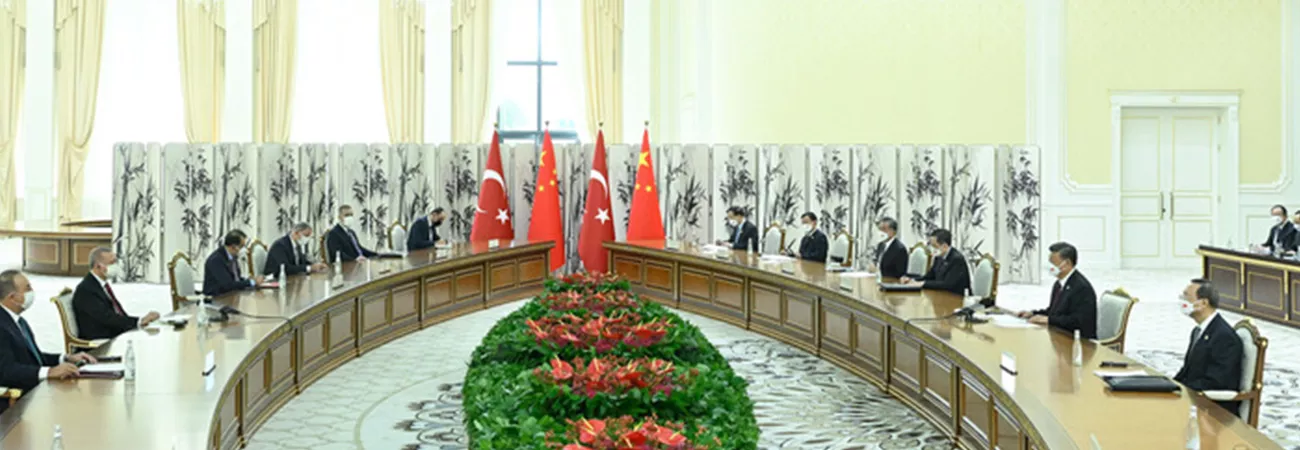 ازبکستان کے سمرقند میں چین کے صدر شی جن پھنگ اور ترکی کے صدر رجب طیب ایردوان فورملر مج مواسی کمپلیکس میں ملاقات کر رہے ہیں۔(شِنہوا)