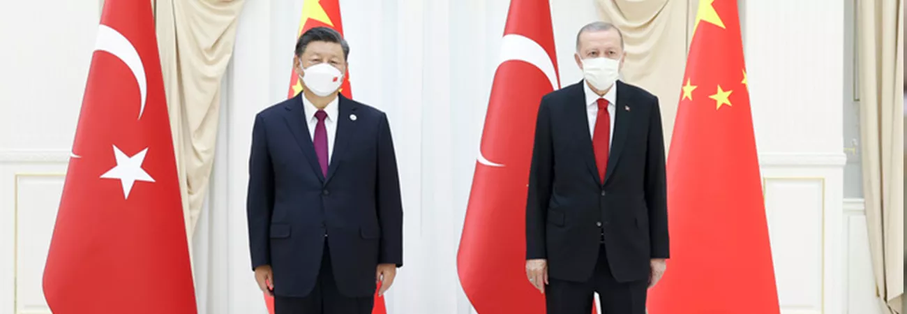 ازبکستان کے سمرقند میں چین کے صدر شی جن پھنگ اور ترکی کے صدر رجب طیب ایردوان فورملر مج مواسی کمپلیکس میں ملاقات کے بعد تصویر بنوا رہے ہیں۔(شِنہوا)