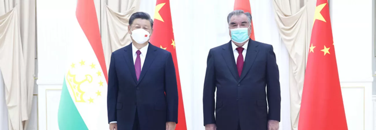 ازبکستان کے سمر قند میں چینی صدر شی جن پھنگ اور تاجکستان کے صدر امام علی رحمان ملاقات کے بعد تصویر بنوا رہے ہیں۔(شِنہوا)