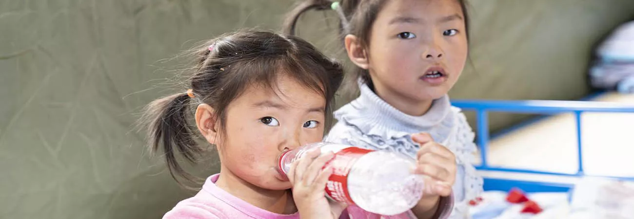 چین کے جنوب مغربی صوبے سیچھوآن کی کاؤنٹی لوڈنگ کے قصبے موشی میں بچے ایک چوک میں قائم عارضی پناہ گاہ میں آرام کر رہے ہیں۔(شِنہوا)