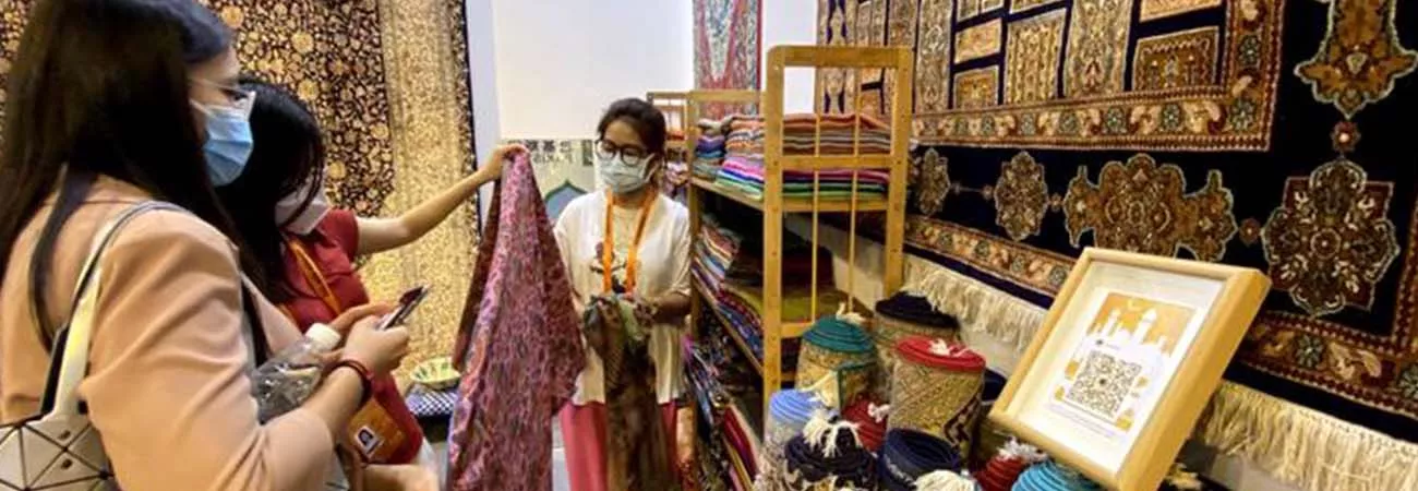 چائنہ انٹرنیشنل فیئر فار ٹریڈ ان سروسز 2022 کے دوران لوگ پاکستان پویلین میں پاکستانی قالین خریدتے ہوئے دیکھے جاسکتے ہیں۔(شِنہوا)