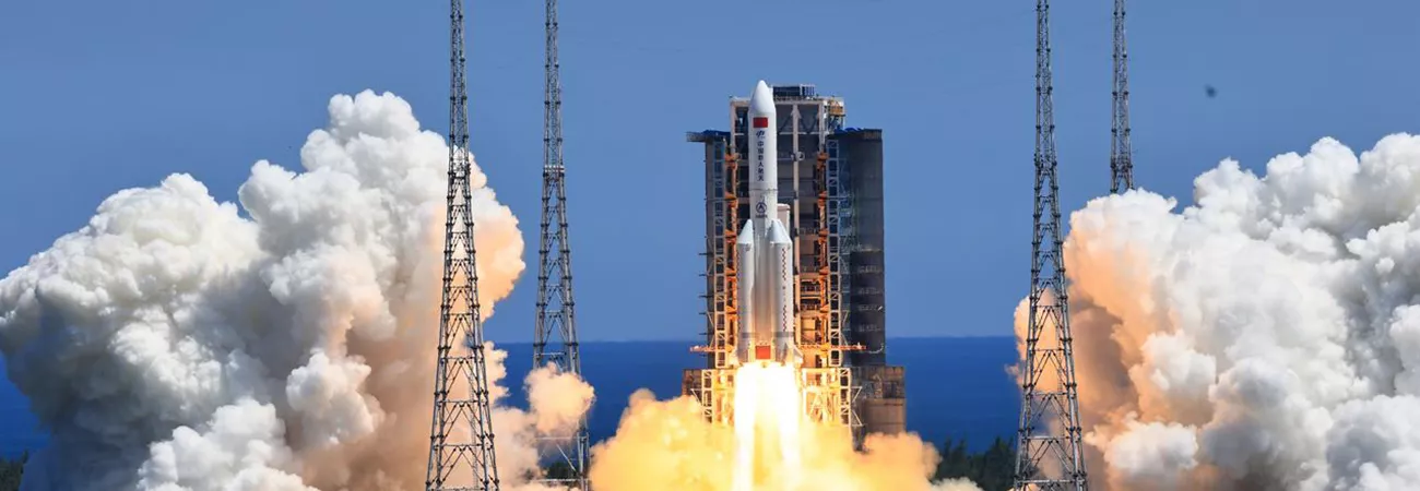 وین چھانگ، ہائی نان(شِنہوا) چین کے خلائی سٹیشن کے لیب ماڈیول مینگ تیان کو خلا میں بھیجنے کے لیے لانگ مارچ-5 بی وائی 4 کو جنوبی صوبے ہائی نان میں وین