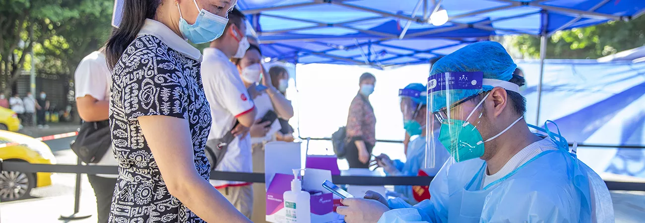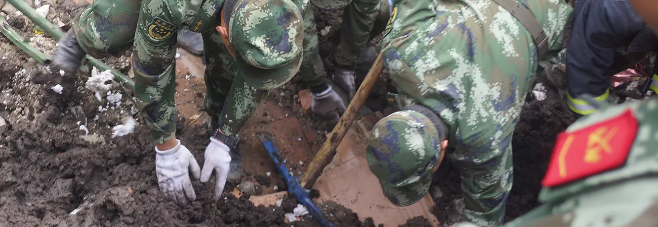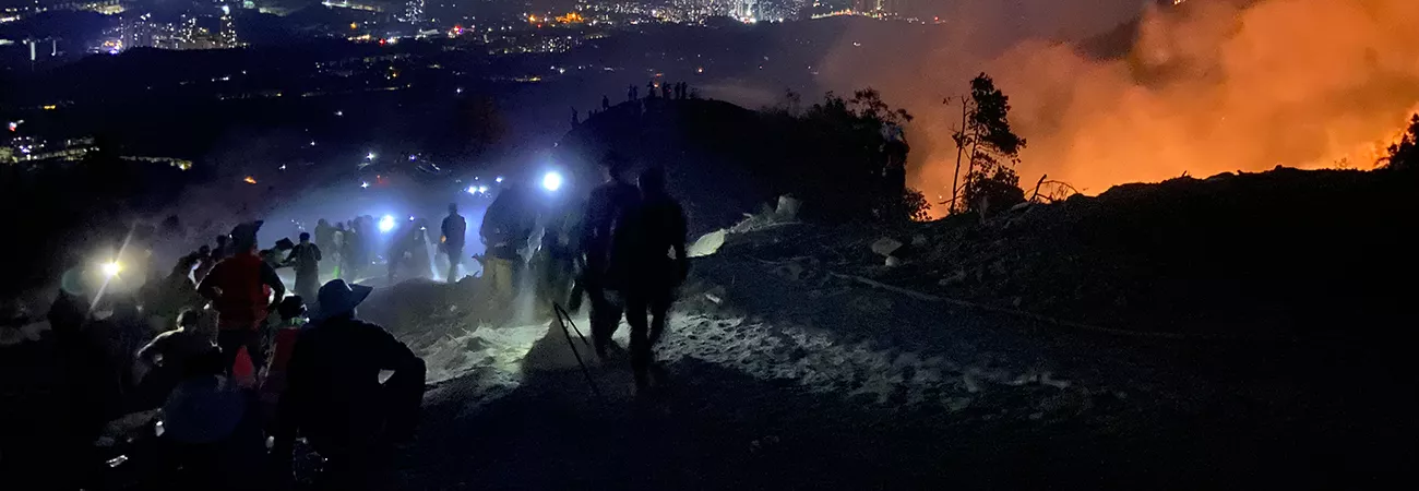 چین کے جنوب مغربی بلدیہ چھونگ چھنگ میں جنگلی آگ بجھانے کی کوششوں میں شامل پاکستانی رضا کار عمر محمود(بائیں سےپہلے) اپنے ساتھیوں کے ساتھ موجود ہے ۔(شِنہوا)