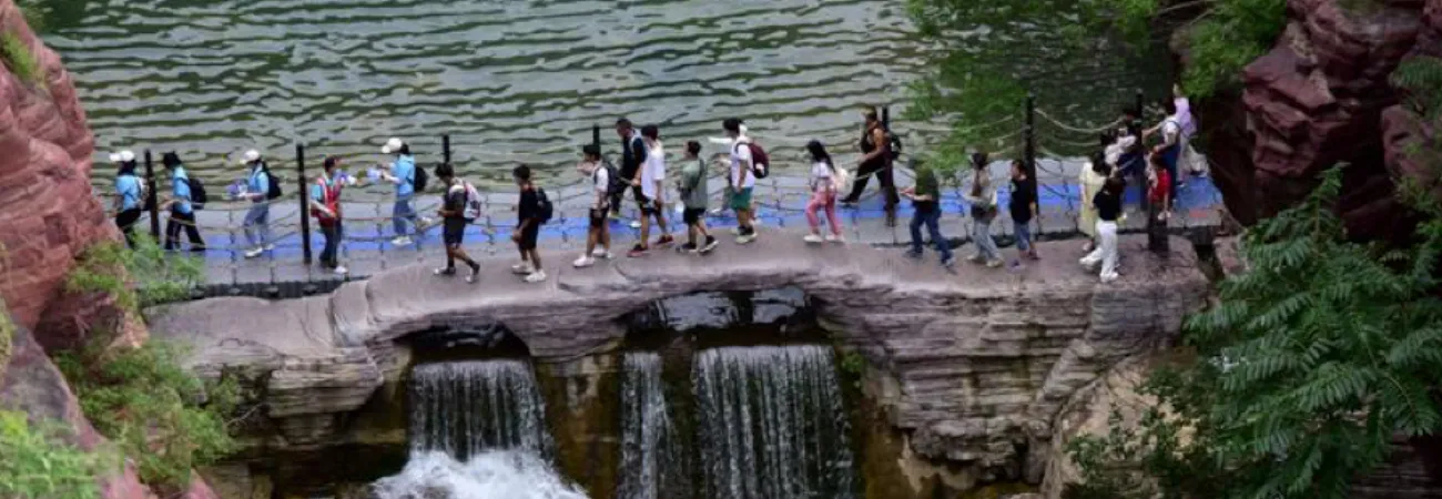 چین کے وسطی صوبہ ہینان میں سیاح یون تائی پہاڑ کے دلکش مقام کا دورہ