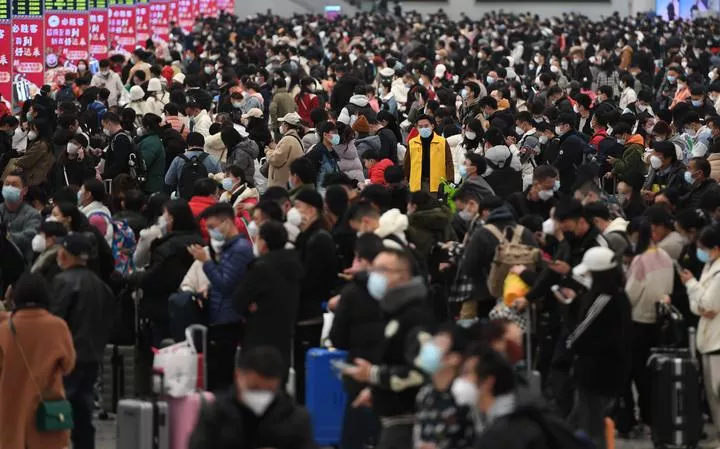 چین کے جنوبی صوبہ گوانگ ڈونگ میں شین ژین نارتھ ریلوے اسٹیشن میں مسافر ٹرینوں پر سوار ہونے کیلئے انتظار کر رہے ہیں۔(شِنہوا)