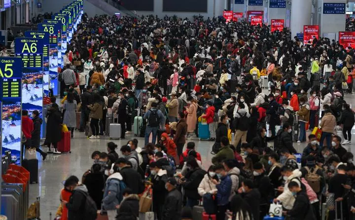 چین کے جنوبی صوبہ گوانگ ڈونگ میں شین ژین نارتھ ریلوے اسٹیشن میں مسافر ٹرینوں پر سوار ہونے کیلئے قطار میں کھڑے ہیں۔(شِنہوا)